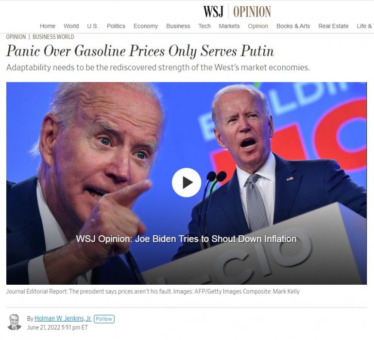 TVRDNjE Džoa Bajdena da je Vladimir Putin odgovoran za skok cena gasa i robe široke potrošnje u SAD su lažne i štetne po američku ekonomiju, izjavio je kolumnista "Vol Strit Džurnala" Holman V. Dženkins, prenose "RIA Novosti".