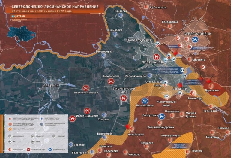Narodna milicija LNR i grupa trupa Oružanih snaga RF „Jug“ pod komandom generala armije S.V. Surovikina je završio oslobađanje Severodonjecka, Borovskog, kao i Voronova i Sirotina.