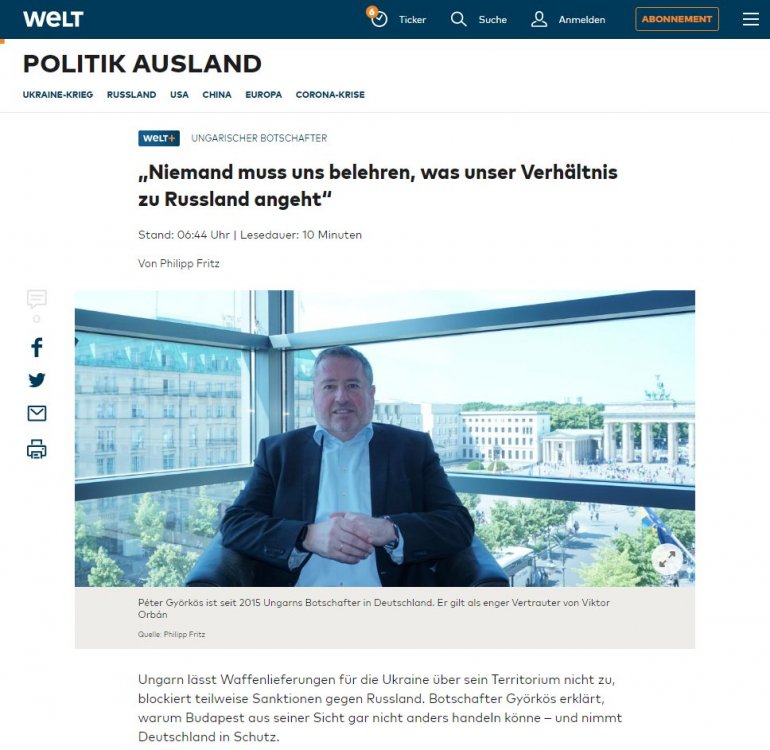 "BUDIMPEŠTI NIKO NEĆE DRŽATI LEKCIJE" Mađarski ambasador za "Velt": "Nemačka od Ukrajine dobija samo kritike"