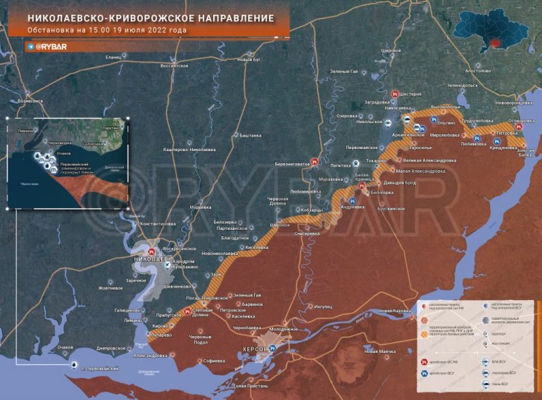 Na telegram kanalu rybar dat je rezime situacija hersonskom frontu.