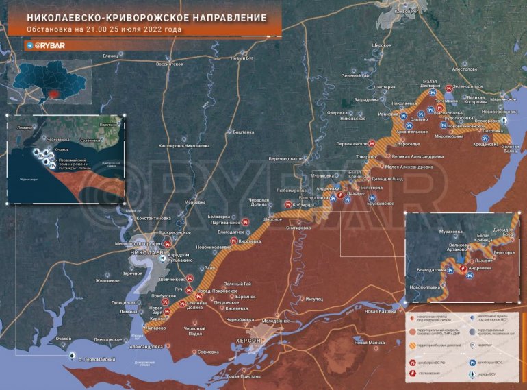 *Ruske jedinice su napale položaje Oružanih snaga Ukrajine u Kiselevki, Potemkinu, Partizanskom, Pervomajskom, Luču, Posad-Pokrovskom, Stepovoj Dolini, Ševčenkovu, Novoj Zari, Pribugskom, Zelenodolsku.