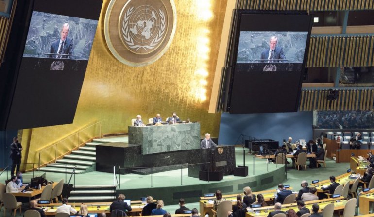 Nakon davanja izjave, ruska delegacija je izašla iz sale UN.