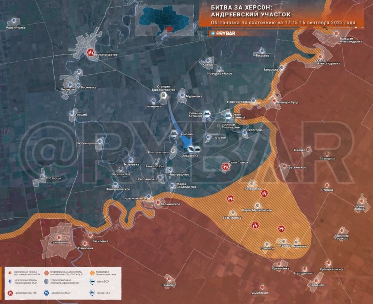 Ukrajinska komanda je u drugoj polovini 15. septembra organizovala popunu municije u rejonu Belogorke. A u blizini Andrejevke raspoređena su dva tenka, kao i proračun ATGM Stugna.