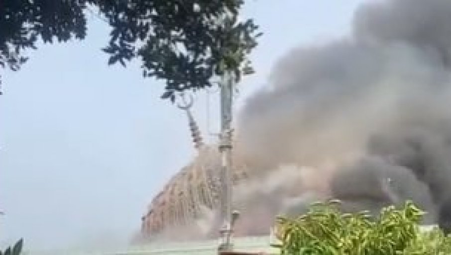 Na video-snimku se vidi kako plamen i dim izbijaju iz kupole džamije neposredno pre njenog urušavanja.