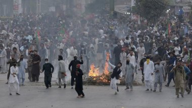 Stotine policajaca opremljenih suzavcem zauzele su položaje u blizini raskrsnice koja povezuje Islamabad sa njegovim pobratimskim gradom Ravalpindijem dok je grupa demonstranata palila drva i uzvikivala slogane, preneo je britanski list "Gardijan".