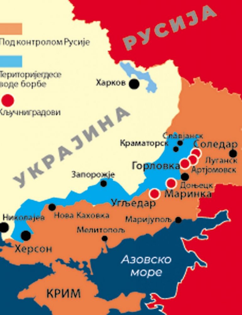 Na istočnom frontu Ukrajine sada inicijativu imaju ruske jedinice. Pomeranja su mala, mada ukrajinska vojska ima velike gubitke, što više ne može da se skriva. Kijev je prisiljen da u zonu najintenzivnijih borbi pošalje veću grupu lekara. Denis Pušilin, predsednik Donjecke republike koja se pripojila Rusiji, kaže da na svim delovima fronta ruske jedinice napreduju, ali na nekim delovima se dnevno napreduje 100 metara, na nekim čak i manje.