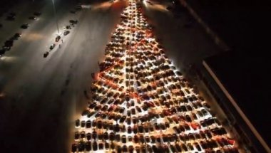 VOZAČI iz Krasnojarska postavili su ruski rekord tako što je 700 automobila napravilo figuru u obliku jelke. Ova manifestacija je održana po treći put.