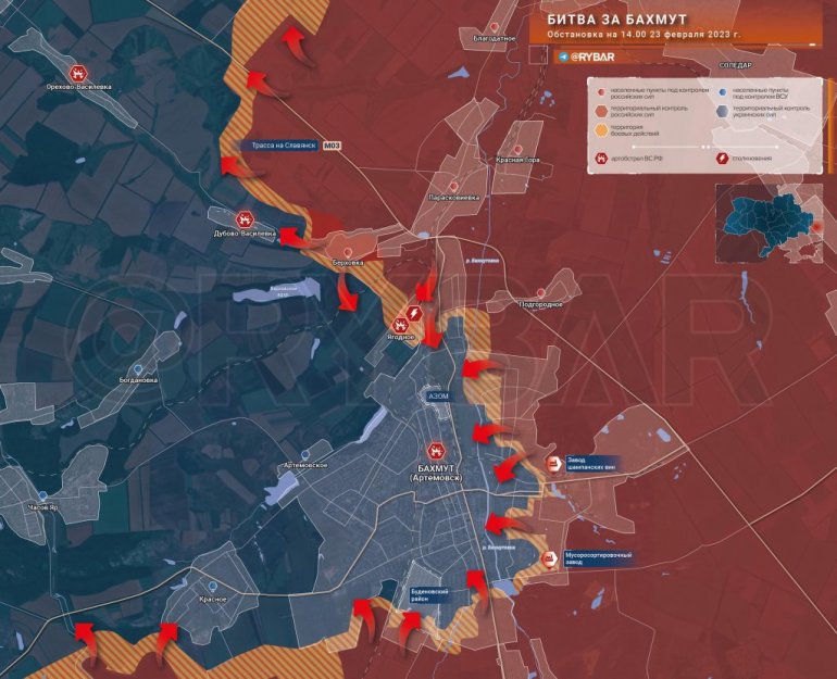 U severozapadnom predgrađu Bahmuta (Artjomovsk) borci PMC „Vagner“ preuzeli su kontrolu nad Berhovkom, kroz koju prolazi nekoliko puteva važnih za odbranu VSU. Kontrola nad njim će prekinuti snabdevanje Oružanih snaga Ukrajine i pojačaće pritisak na severnu periferiju Bahmuta.
