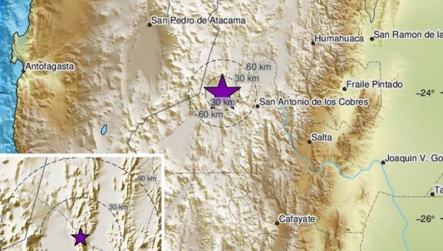 ZEMLjOTRES magnitude 5,6 stepeni po Rihterovoj skali dogodio se u argentinskoj oblasti Salta, saopštio je Evropsko-mediteranski seizmološki centar /EMSC/.