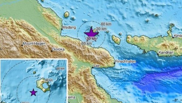 Prema saopštenju, epicentar zemljotresa je bio 448 km severozapadno od Port Morsbija i na dubini od 200 km, navodi Rojters.