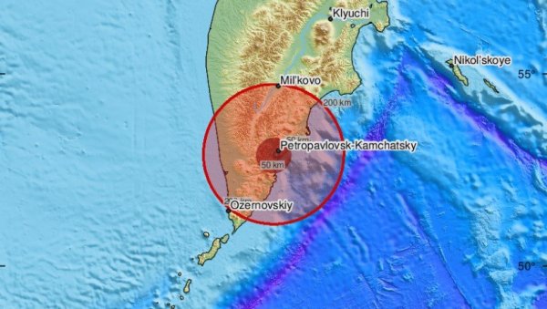 Epicentar je bio u Avačkom zalivu, 44 km južno od Petropavlovska Kamčatskog, na dubini od 100 kilometara, prenosi Interfaks.