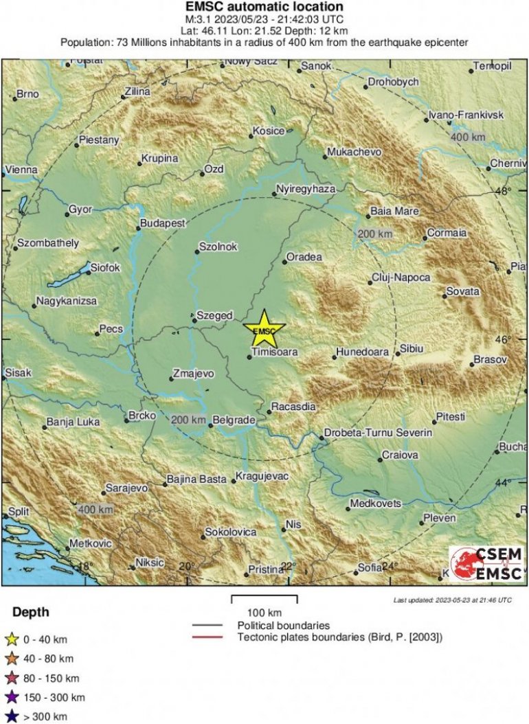Epicentar je bio na dubini od 15 kilometara, na oko 40 kilometara od Temišvara.