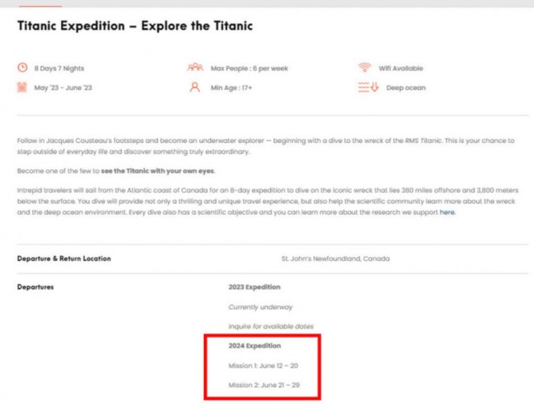 Među "stručnjacima koji mogu da vam se pridruže u ekspediciji" naveden je i Pol-Anri Naržeole, francuski ronilac koji je među petoro stradalih u imploziji "Titana" 18. juna.