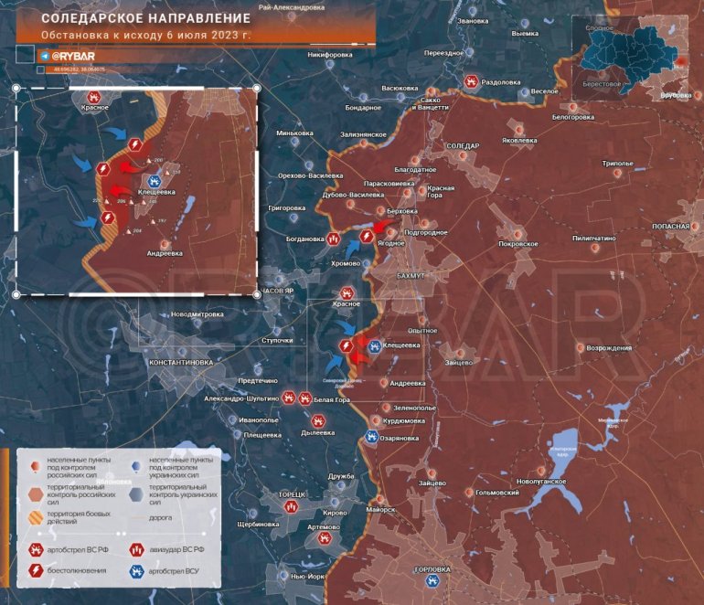 Nastavljaju se žestoke borbe na bokovima Bahmuta u pravcu Soledara. Kod Kleščejevke ruske trupe su uspele da napreduju i zauzmu visove zapadno od naselja, a kod Berhovke jedinice Oružanih snaga RF proširile su svoju zonu kontrole u blizini lokalnog jezera.