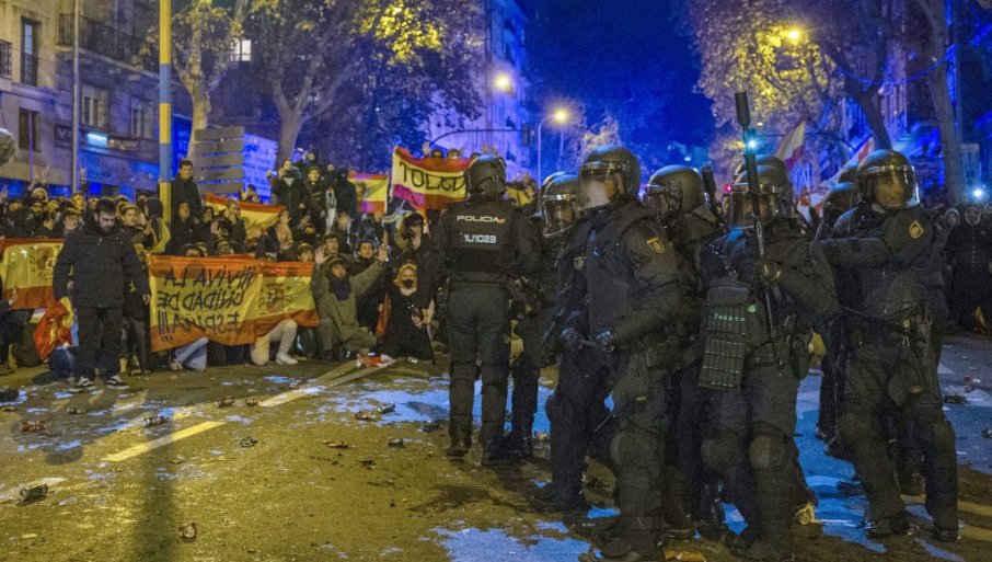 Demonstranti u Madridu su pod državnim zastavama Španije uzvikivali uvrede na račun vršioca dužnosti premijera Pedra Sančeza, a neki ga nazivali "izdajnikom" i "nacistom". Demonstranti su gurali barijere koje je postavila policija s opremom za nerede, a ona odgovorila gumenim mecima i pendrecima.