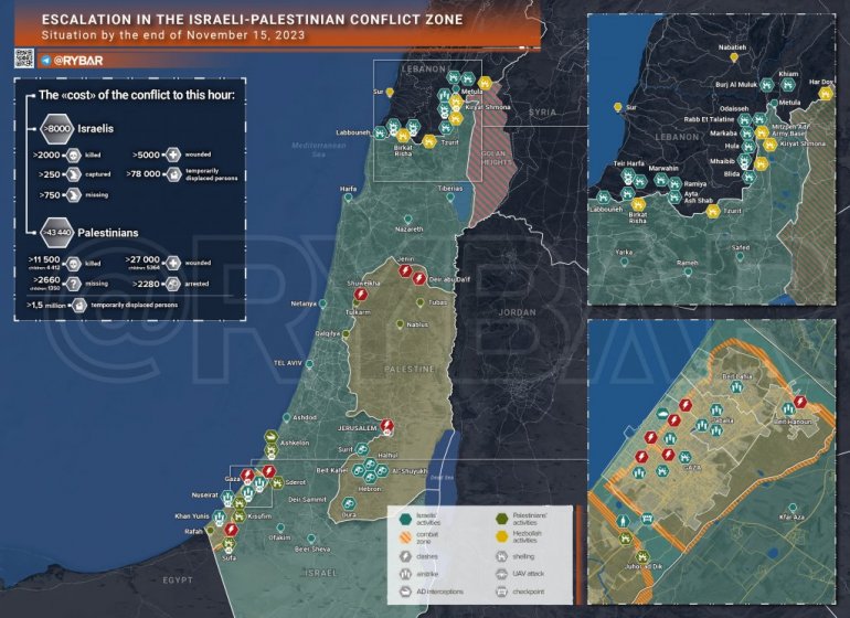 Glavni događaji na severu Pojasa Gaze odvijali su se oko bolnice Al-Šifa, na koju je napad počeo u noći između 14. i 15. novembra. Suprotno tvrdnjama o „podzemnom štabu Hamasa“, javnosti još nije pokazano ništa što bi ukazivalo na korišćenje bolnice kao pokrića za štab.