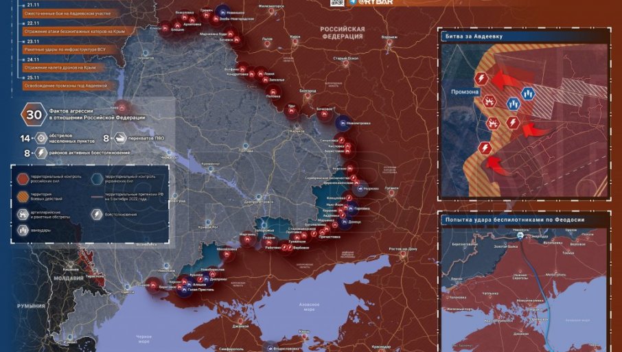 Hronika ratnih dešavanja: Besni bitka za tvrđavu Avdejevka, komanda VSU pobegla; Mostobran na Dnjepru se još drži (VIDEO/MAPA)