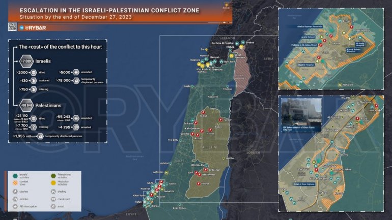 Na jugu enklave, izraelske trupe su uspele da zauzmu gradsku većnicu Kan Junisa u blizini centralnog gradskog trga, a na istoku, u oblasti Abasan al-Džadid, uspele su da napreduju kroz poljoprivredno zemljište.