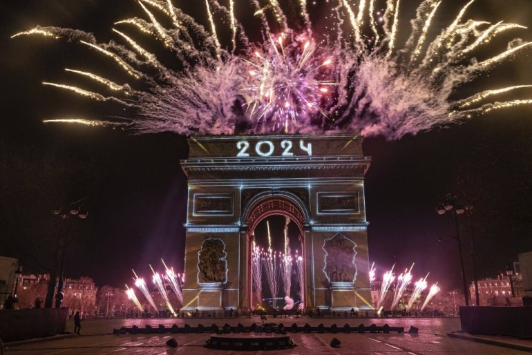 Pariz je dočekao 2024. godinu bez vozila u većem delu grada, a procenjuje se da je na ulicama bilo oko 1,5 miliona ljudi. Širom Francuske bilo je raspoređeno oko 90.000 policajaca i bezbednjaka, od kojih je 6.000 bilo u glavnom gradu. Vatromet i video projekcije su protekle u znaku Olimpijskih igara 2024 u Parizu, uz prisustvo brojnih di-džejeva, a glavni događaj bio je kod Trijumfalne kapije.