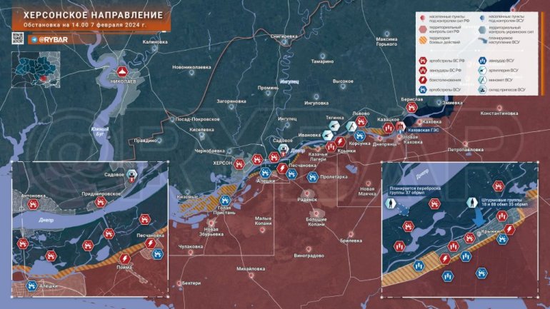 U Krinkima na Hersonskom pravcu, zbog aktivnog rada Vazdušno-kosmičkih snaga Rusije na pozicijama Oružanih snaga Ukrajine u Krinkima, primetno je smanjena borbena gotovost udarne grupe Katran. Ipak, VSU nastavlja da rotira jedinice, šaljući snage na mostobran da zamene one koji su izbačene iz stroja.
