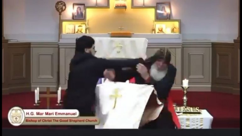 Na užasavajućem snimku incidenta, koji se uživo emitovan na Jutjubu stranici crkve koju prati 200.000 ljudi, vidi se da episkop Emanuel začuđeno podiže pogled dok napadač iznenada zadaje udarce po licu i glavi.