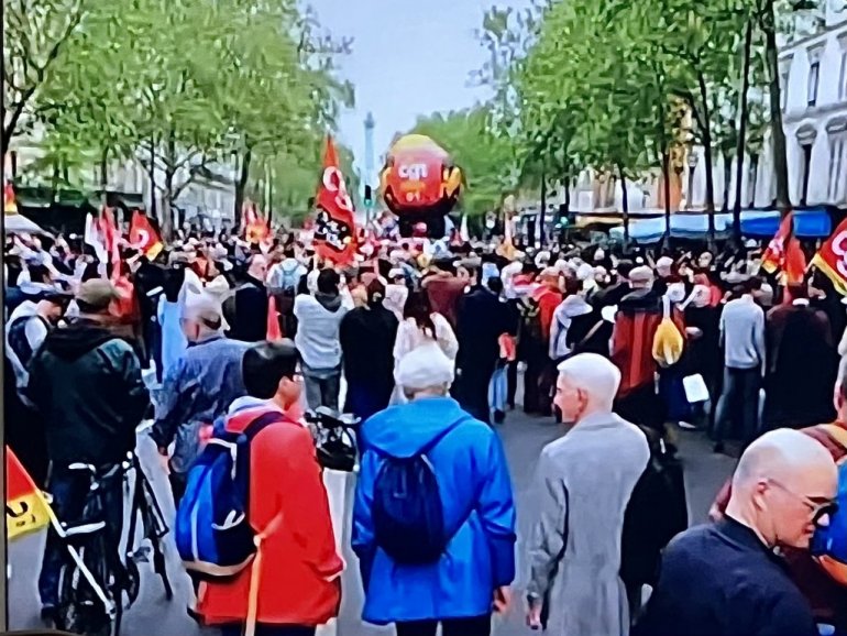 Učesnici su tokom povorke isticali poruke kojima traže veća socijalna prava i bolje plate u trenutku velikih poskupljenja. Skup se održava u tenzijama i zbog rata u Gazi i protesta studenata na francuskim fakultetima, a viđeno je i više palestinskih zastava.