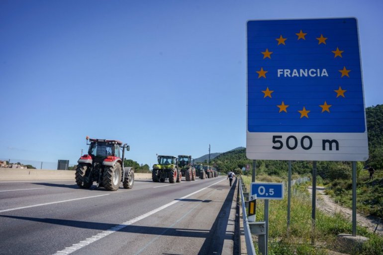 Francuski i španski farmeri su koristili desetine traktora da blokiraju obe strane granice na autoputu AP-8 u Baskiji i na autoputu AP-7 u Kataloniji.