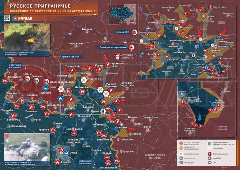 Situacija u oblasti Ruske i Čerkaske Konopeleka postala je jasnija. VSU napada ka ovom drugom: na primer, uhvaćen je trenutak kada je dron pogodio grupu ukrajinske pešadije u jednoj od zgrada na teritoriji benzinske pumpe Lotos.