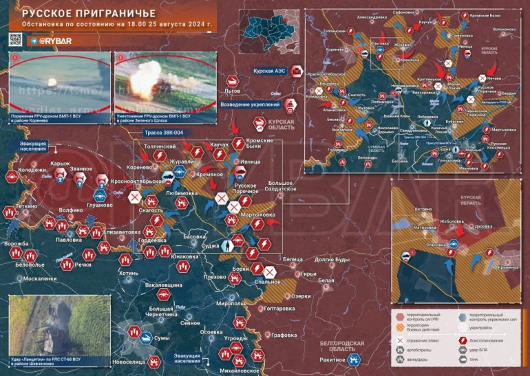 Na prilazima Korenevu i Zelenom Šljahu dva BMP-1 su pogođena FPV dronovima. Ukrajinske oružane snage nastavljaju da pokušavaju da uđu u samo Korenevo, ali su svi njihovi napadi uspešno odbijeni.