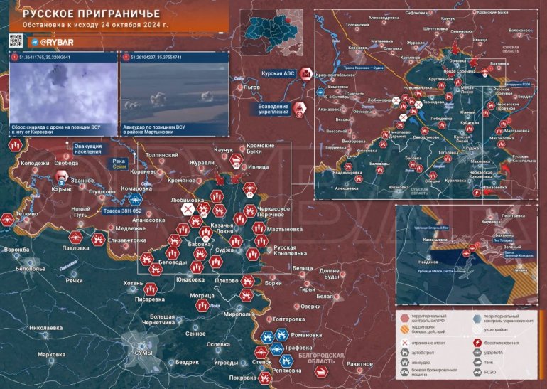 U Sumskoj oblasti, Vazdušno-kosmičke snage Rusije pogodile su objekte Oružanih snaga Ukrajine u oblastima Mogrica, Belovodov i Lokne. U regionu se nastavljaju vanredni nestanci struje. Ilustracija telegram rybar