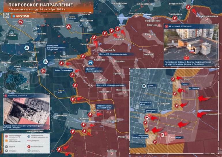 Situacija na Pokrovskom pravcu se razvija izuzetno dinamično i pozitivno za ruske snage. U Selidovu su za jedan dan napredovali sa istoka i juga ka centralnom delu, podignute su zastave na nekoliko nebodera. VSU navodi da drži položaje samo na severnoj i severoistočnoj periferiji. Za ukrajinske oružane snage situacija se iz sata u sat sve više komplikuje: nemaju stabilnu liniju odbrane, a ruske jedinice sa boka se približavaju poslednjem preostalom putu. U Gornjaku je situacija za VSU još gora. Ukrajinska javnost govori o masovnom dezerterstvu i napuštanju položaja u severnom delu Gornjaka, i to objašnjava veoma brzo napredovanje ruskih jedinica. Na liniji Novoselidovka-Izmailovka, na više mesta je probijena odbrana, a u Novoselidovci je bilo izvesnih uspeha.