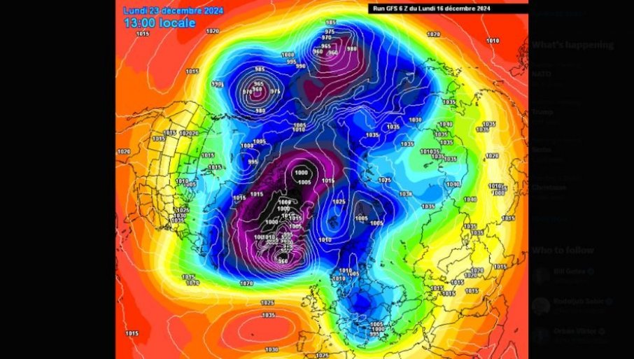 Istovremeno, zajedno sa snežnom olujom sa severa Atlantika je preko juga Skandinavije i juga Baltika do istoka Evrope stigla i toplija vazdušna masa, dok se ledena zadržava na severu Rusije, uz temperature i do -30 stepeni.