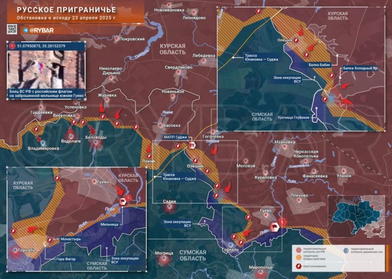 Kontrola visova oko manastira Gornaljski ruskim snagma omogućava da vide ravnice Sumske oblasti uz granicu i selo Miropolje, odakle VSU lansira bespilotne letelice na Kursku oblast. U jednoj od ulica Miropolja, rusko vazdušno izviđanje otkrilo je odjednom tri posade bespilotnih letelica, koje su napadnute.
