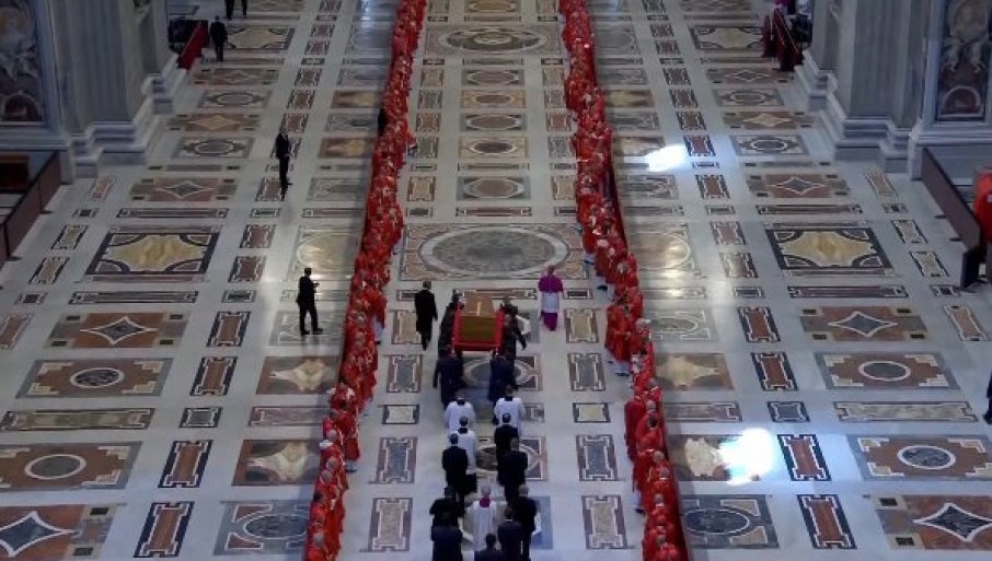 Pogrebna misa je sada završena, a pogrebna povorka sa papinim kovdžegom krenula je ka bazilici Santa Marija Mađore u Rimu u kojoj će papa biti sahranjen.
