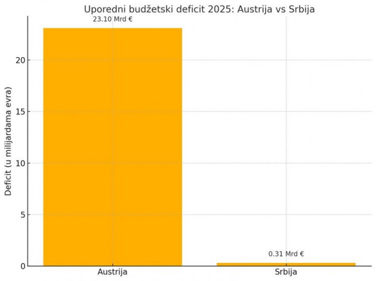 AUSTRIJI ove godine preti budžetski minus od čak 23,1 milijardu evra, Srbija u isto vreme beleži deficit od svega 311 miliona evra.