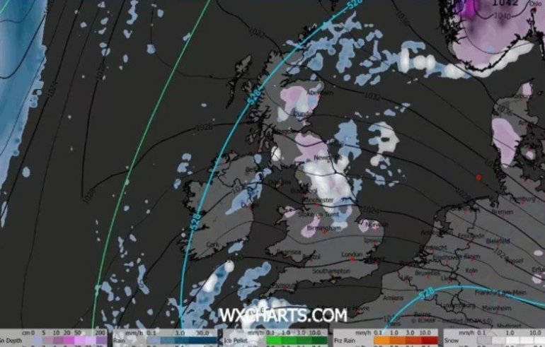 Prema mapama WXCharts, sneg će prvo zahvatiti oblasti oko Birmingema i Stouk-on-Trenta, dok će se tokom dana proširiti na Gloster, Njukasl i Dandi. Do ponoći, snežni pokrivač će se nakupiti u Škotskoj, posebno u Dandiju i Edinburgu.