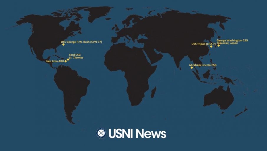 Udarna grupa nosača aviona USS George H. W. Bush (CVN-77), klase „Nimitz“, već je napustila luku Norfolk i kreće se ka Sredozemnom moru. Očekuje se da će se potom premestiti ka Bliskom istoku, verovatno preko Sueckog kanala, zatim Crvenog mora, da bi se rasporedila u Arabijskom moru. Time bi se pridružila drugoj udarnoj grupi koja je već na putu.