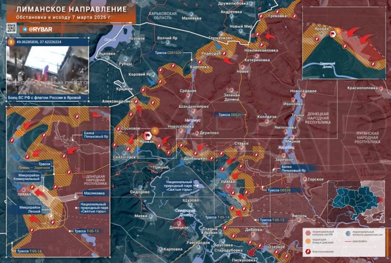 Borbe se nastavljaju na obodu samog Svjatogorska. Ruske jedinice su uspele da se učvrste u istočnom delu Jarovaje, a VSU sada pokušava da odatle izbaci ruske oružane snage, napadajući kroz šume iz pravca samog Svjatogorska. Teške borbe se nastavljaju.