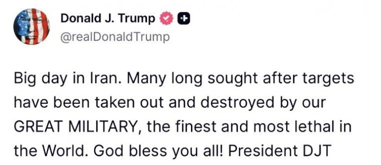 - Veliki dan u Iranu. Mnogo dugo traženih ciljeva je eliminisala i uništila naša velika vojska, najbolja i najsmrtonosnija na svetu. Bog vas sve blagoslovio! - napisao je Tramp.
