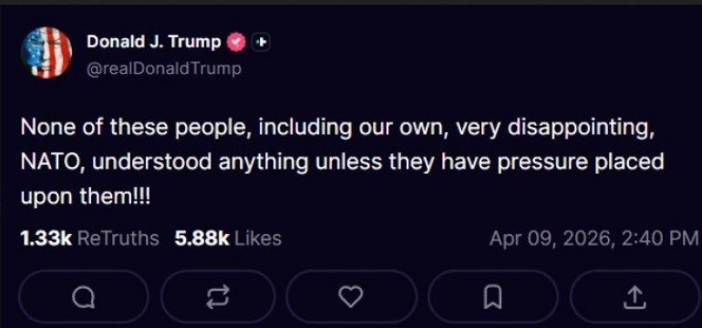 - Niko od ovih ljudi, uključujući i naš, veoma razočaravajuće, NATO, nije ništa razumeo, osim ako nije bio pod pritiskom!!! - objavio je Donald Tramp na svojoj društvenoj mreži "Truth Social."