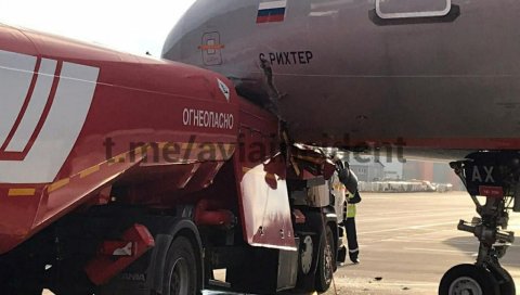 CISTERNA za gorivo i avion Erbus A321 sudarili su se na moskovskom aerodromu "Šeremetjevo", a u incidentu je povređena jedna osoba, prenela je agencija TASS.