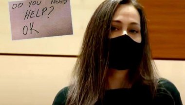 Odlučila je da napiše poruku koja je glasila: "Da li ti treba pomoć? OK", a stala je iza njegovih roditelja kako bi dečak mogao da odgovori.