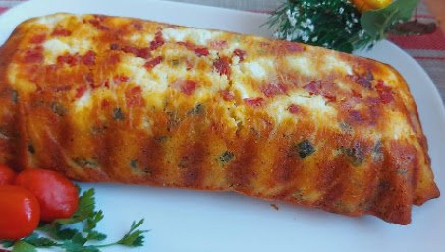 Na kraju dodati pržen luk i kiselu vodu i sve deobro izjednačiti. Pleh obložiti pek papirom pa na dno staviti ostatak pržene slanine i parizera i rasporediti po dnu i izliti testo preko slanine. Peći na 210 stepeni oko sat vremena. Služiti toplo kako god vam je potrebno.