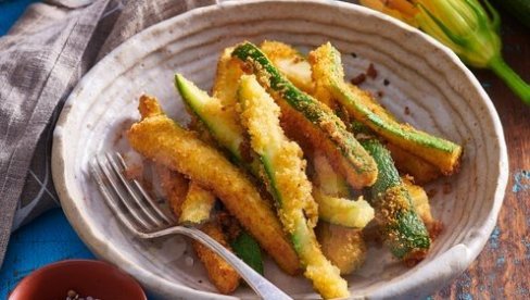 U međuvremenu obložite pleh papirom za pečenje. Stavite sastojke za ćufte u veliku činiju, začinite po ukusu i promešajte da se sjedine. Razvaljajte jednu po jednu kašičicu mešavine u kuglice i stavite na pripremljen pleh. Ostavite u frižideru 30 minuta da se stegnu. Zagrejte 2 kašike ulja u velikom tiganju na jakoj vatri i pržite ćufte 5-6 minuta, dok ne porumene.