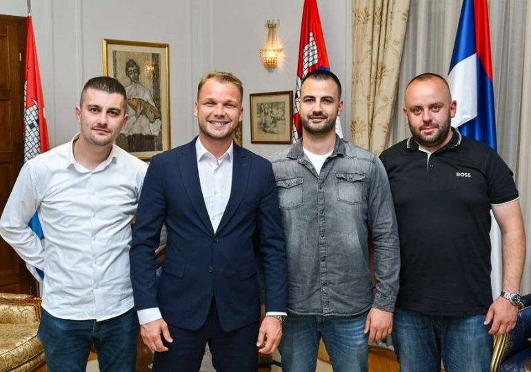 Marko Klašnja, Miloš Jeremić i Svetozar Tur sa gradonačelnikom Draškom Stanivukovićem