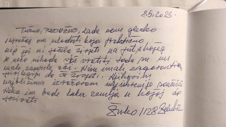 "Tužno, pretužno, kada sam gledao ispraćaj ove mladosti koja praktično nije još ni počela. Živjeti na putu s kojeg se neće nikada više vratiti. Sada su mi malo zasuzile oči. Nisu imali zagarantovanu privilegiju da će živjeti. Njihovim najbližima izražavam najiskrenije saučešće. Neka im bude laka zemlja u kojoj će počivati." U potpisu "Živko 1128 Zelenbrz"