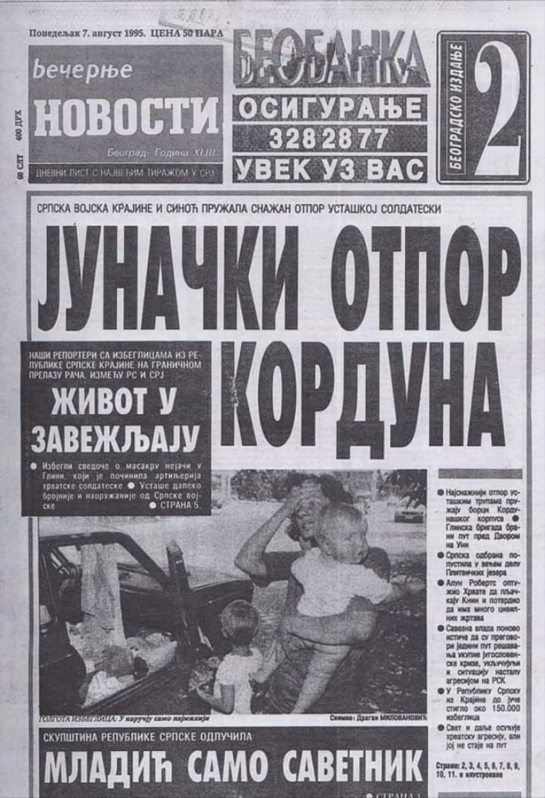 NATALIJIN BEG OD "OLUJE": Supruga Nikole Jokića na naslovnoj strani "Novosti" 7. avgusta 1995.