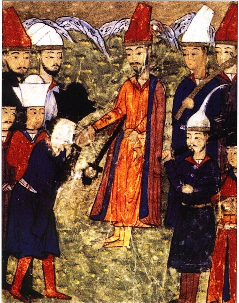 "Kad on (Murat han) uze i osvoji Rum (Vizantiju), njegove gospodare (begove) učini svojim robovima. Na kraju krajeva osvoji ga želja pokoriti i Laza, i zato nastade onde neophodna borba. Gebri (nevernici) i hrišćani što ih ima do Zapada (zemlje) dadoše Lazu vojske bez broja, da one vode rat sa Gazi Muratom, da telo njegovo pretvore u zemaljski npax. Gazi han zametnu tada s njima takav rat, da im zemaljska površina tesna posta. Kud pogledaš, na sve strane valjaše se glava, kud baciš okom, svud ležaše trup. Zemlja beše sva pokrita glavama i leševima (nagomilanih) u nekoliko redova. Po trupovima trčaše konj... Konjica i vojska ode goniti neprijatelja, a šah sa nekoliko slugu osta na jednom mestu. Stajao je onde, čim se vojske vrate da mogu opet onde naći svoga vođu. Pripovedaju, da je, okaljavši se od glave do pete u krvi, onde ležao i neki kaurin (nevernik). Kažu, da je bio sakriven među trupovima, ali je jasno mogao videti Gazi-hana. Kad nastupi gore određena sudbina, on usta najednom iz ležećeg položaja, i priskočivši udari šaha handžarom! I evo, udostojivši se (višnje) cpeće sultan u isti tren na tom mestu, bio je pobedonosan borac za veru, a posta, neosporno, i mučenik za nju!"