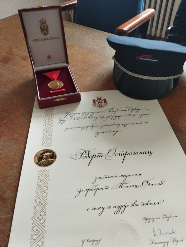 ROBERTA je za viteški poduhvat na Sretenje odlikovao predsednik Aleksandar Vučić Medaljom za hrabrost "Miloš Obilić".