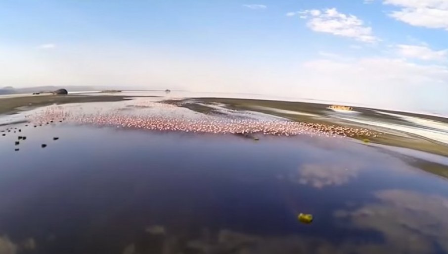 Oko jezera koje je duboko svega 3 metra, dužine 57 i širine 22 kilometra i temperature od 41 stepen Celzijusa, bezbrižno se šetaju i flamingosi.